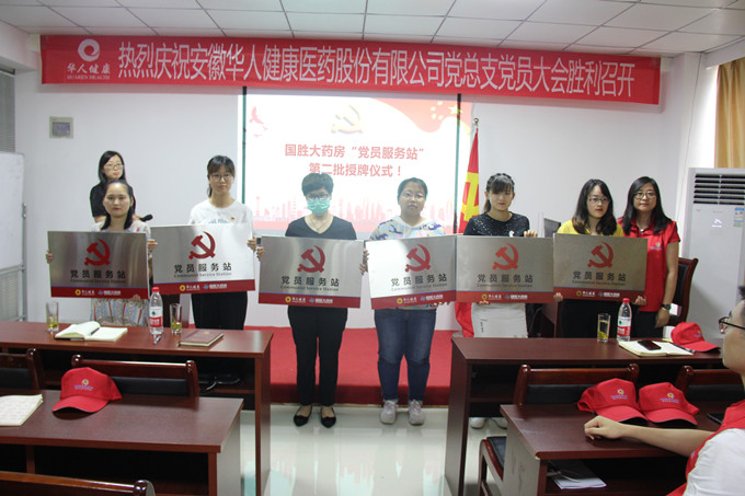 随后国胜大药房党支部书记杨云同志分别给国胜大药房黄山路店等六家门店进行了第二批“党员服务站”授牌,充分展现“党建到门店,党员练一线”的部署,促进了服务、党建有机融合,进一步打造老百姓放心购药的“红色品牌”。