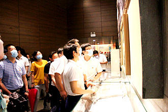 九时许,两部30多名党员同志们无畏暴雨带来的险阻,准时集合在红色革命教育基地——渡江战役纪念馆。缅怀革命先烈、传承红色基因,在何家乐书记与交行安徽省分行第38党支部书记、交行黄山路中心支行行长宋玲子书记的带领下,两部同志来到了渡江战役纪念馆学习参观,一同回顾历史,重温誓词,立足当下,展望未来。